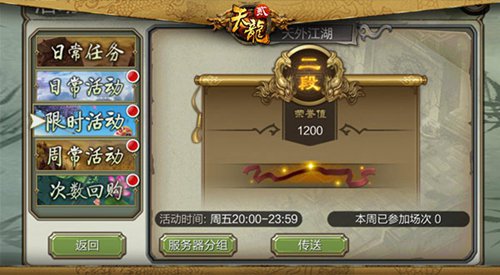 系統依據玩家【天外江湖段位d獎賞】終究,不同段位等級的玩家將領取不同數量的綁定元寶和成果點,其間,運用成果點就可以到商城兌換所需的物品了。